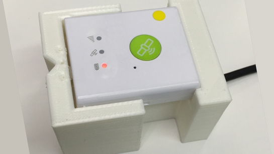 小型GPSを内蔵した高齢者専用シューズを開発しました。